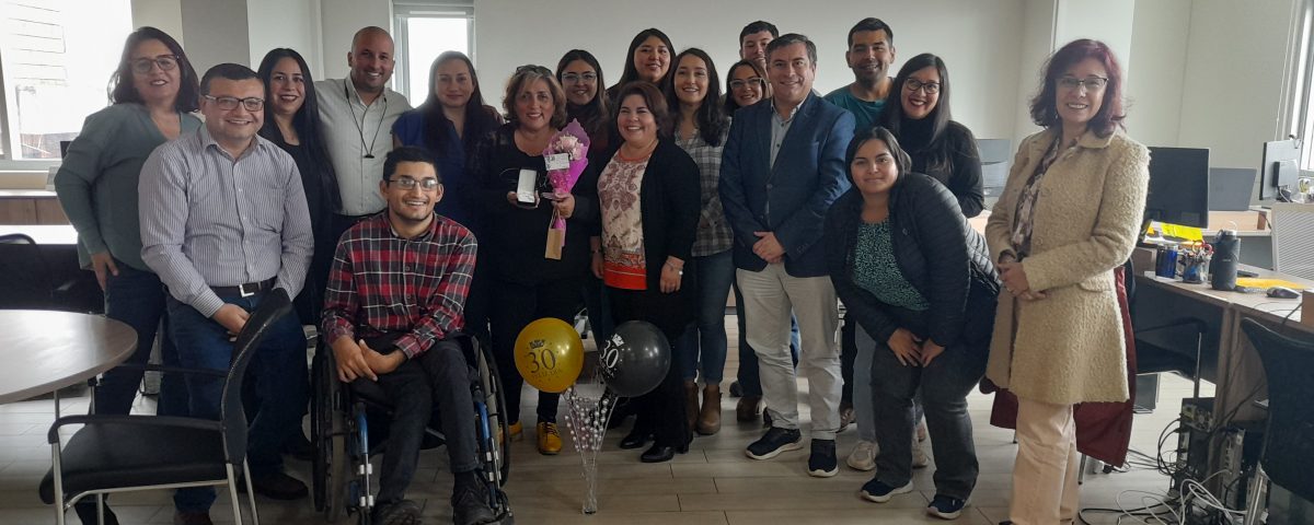 Celebrada por sus colegas, Claudia Gajardo Campos, coordinadora de proyectos, cumplió recientemente 30 años trabajando para Fudea Ufro, siendo la funcionaria más antigua de la Fundación.